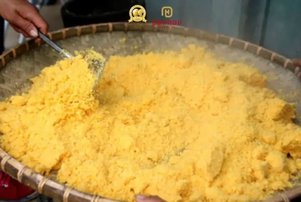 Men men is a humble dish closely tied to the daily life of the H Mong people. Corn is finely ground and steamed several times to achieve a fluffy, nutty texture. Often served with soup or thang co, men men reflects the simplicity and resilience found in ha giang food culture.