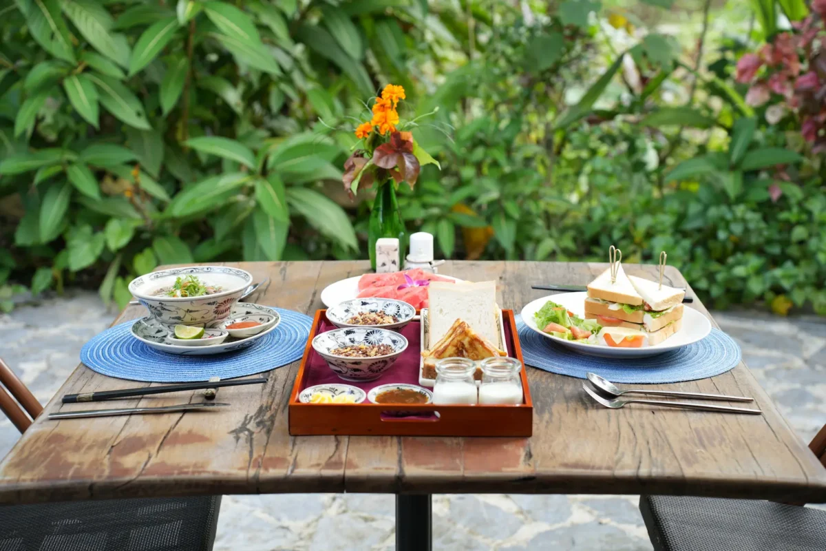 Trong không gian thiên nhiên trong lành, một bữa cơm ấm cúng được đội ngũ nhân viên của Panhou Retreat chăm chút tỉ mỉ từng chi tiết dẫn lỗi bạn vào ẩm thực bản địa.