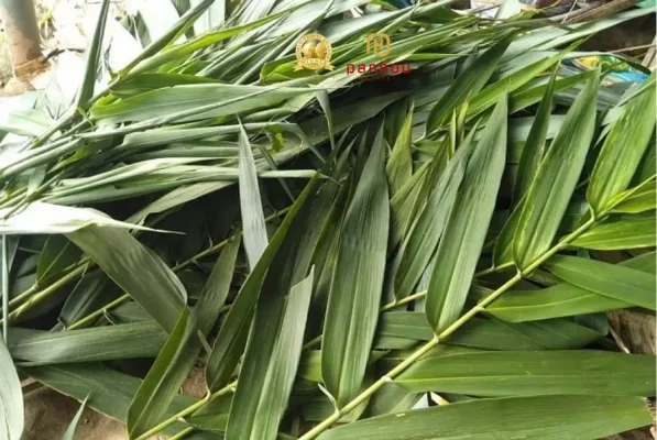 Đầu tiên phải kể đến đó là lá chít – một loại lá đặc trưng của vùng núi phía Bắc, những chiếc lá xanh mướt to bản và đầy sức sống, mọc thẳng đứng thành từng bụi cao từ 1 đến 1,5 m. Với màu xanh gần giống với lá dong (loại lá phổ biến ở vùng đồng bằng) có chiều dài khoảng 35cm và rộng từ 8 đến 10 cm. Để đạt điều kiện mang về gói bánh, những chiếc lá chít thường phải là những lá bản to và xanh tươi, còn những lá đã ố vàng và héo úa sẽ không được sử dụng.