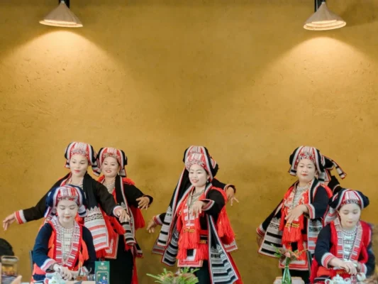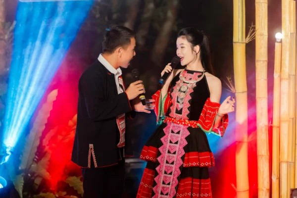 | Cultural PerformanceNhững tiết mục múa khăn, múa chuông uyển chuyển cùng làn điệu dân ca bằng tiếng Dao sẽ đưa bạn vào không gian văn hoá tinh tế của người vùng cao. Từng động tác mềm mại, từng khúc hát da diết kể lại chuyện tình, nếp sống, và tín ngưỡng thiêng liêng của cộng đồng, như lời thì thầm của núi rừng vọng về qua bao thế hệ.